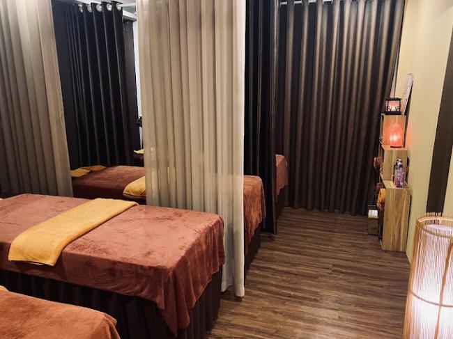 - Head, Neck, Shoulder Massage: là liệu pháp xoa bóp, ấn huyệt đầu và giữa 2 bả vai làm xoa dịu các cơ và mô cơ xung quanh đầu, cổ, vai, gáy để giảm đau và giảm căng thẳng